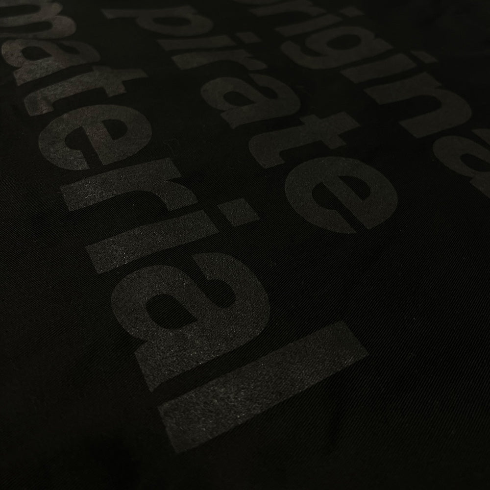 Black ‘Original Pirate Material' bomber jacket. Regular fit. Heavy weight, 300g, Shell jacket, two side pockets, with ribbed collar, hem & cuffs.