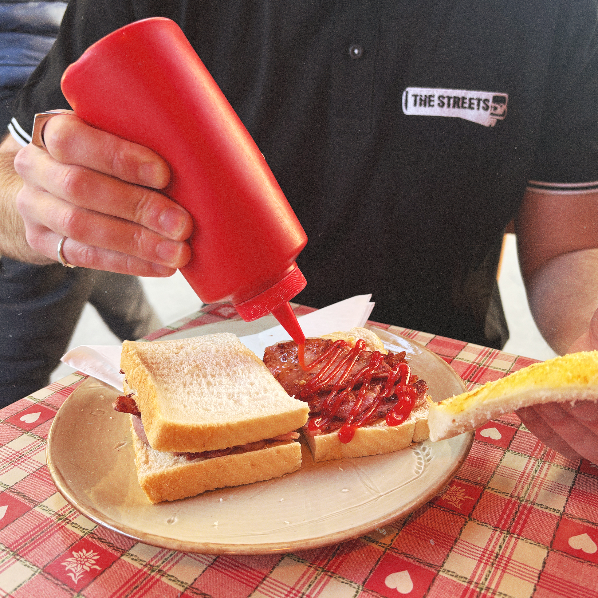 Black short sleeved polo shirt with white contrast tipping on collar and cuffs and The Streets Lighter Logo front print.