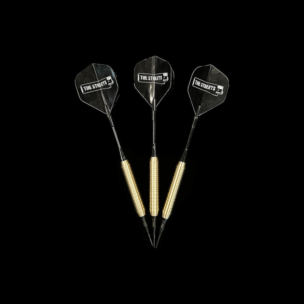 3 piece custom darts set with The Streets Lighter logo print. Comes in a beautiful presentation box.